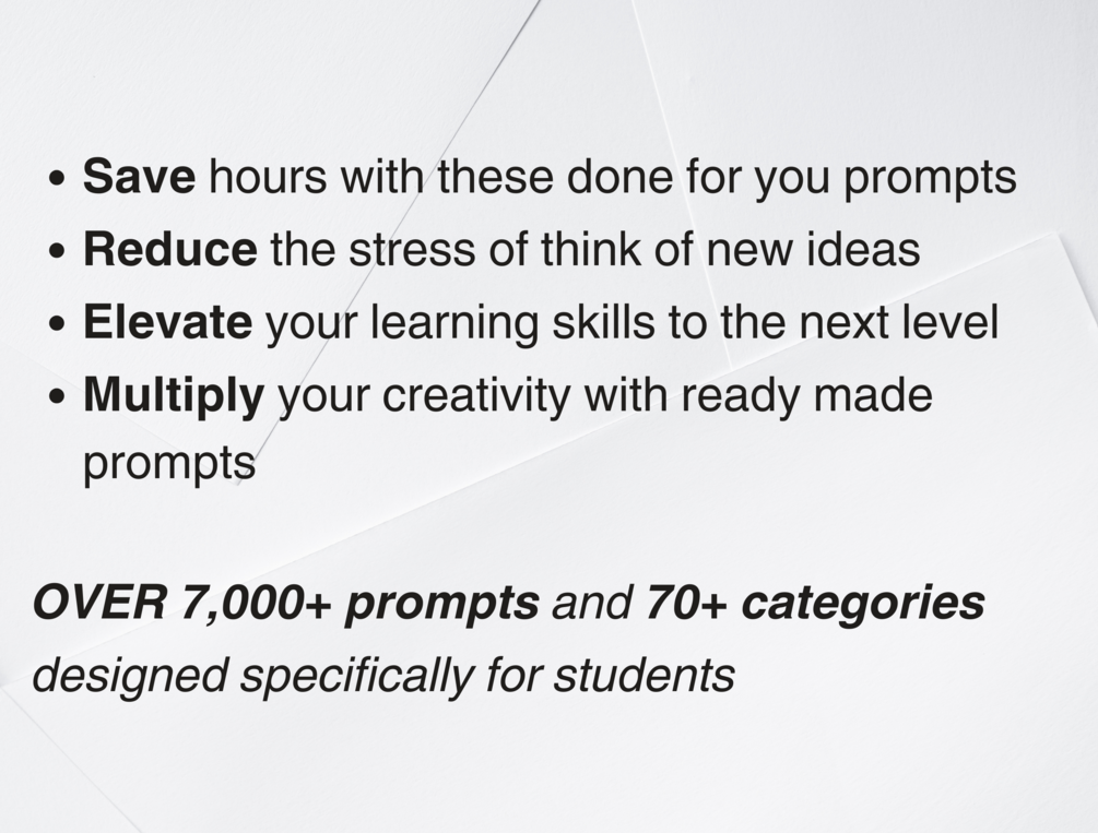 ⚡ Elevate Your Learning Game: Over 4000+ ChatGPT Prompts made specifically for students – Save time, Brainstorm less & Problem-Solving Effortlessly!